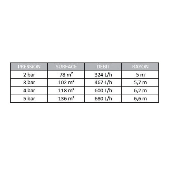 | 5 bar | 136 m² | 680 L/h | 6,6 m |