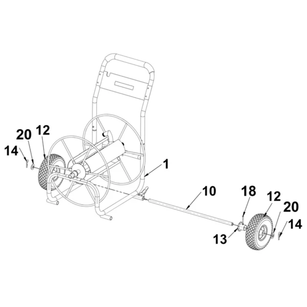 | Repère sur la vue éclatée Dévidoir 2 roues 85 mètres de tuyau d’arrosage | 14 |