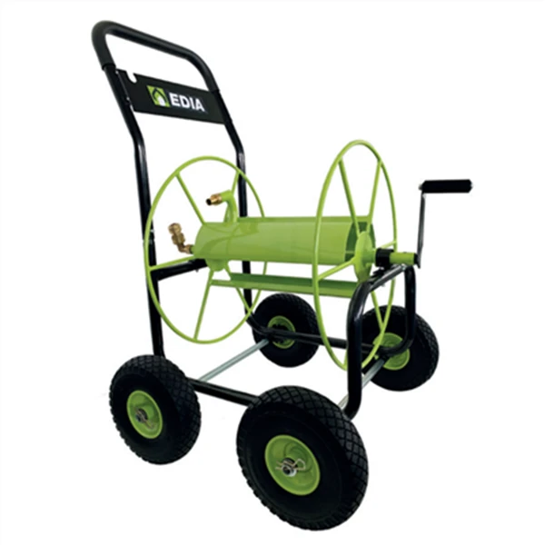 Dévidoir métallique sur 4 roues increvables – Edia – Pour tuyau d’arrosage de 110 mètres – Diamètre 19 mm – Noir et vert