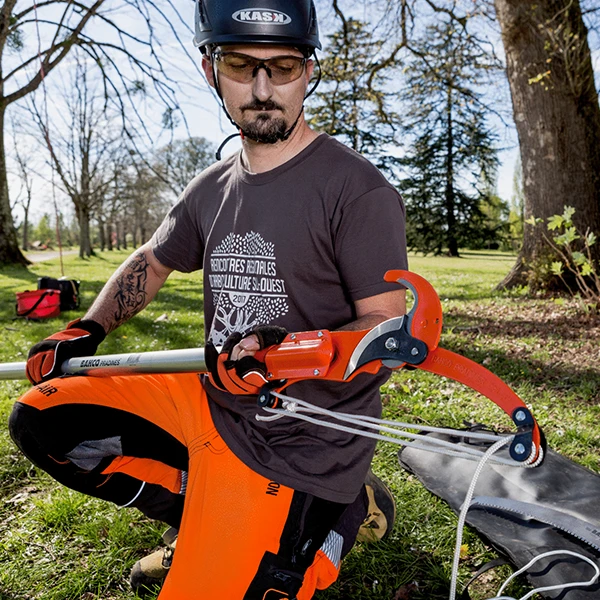 Si vous souhaitez atteindre des branches hautes, vous pouvez l’utiliser avec une perche télescopique.