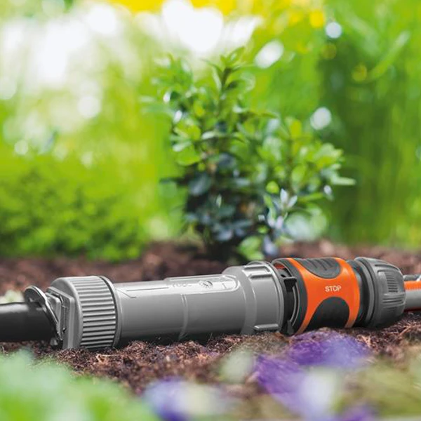 Cette centrale d’irrigation est un élément du système d’arrosage goutte à goutte « Micro-Drip » Gardena.